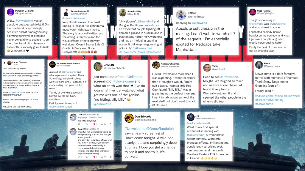 UNWELCOME had special previews at Cineworld and Odeon cinemas last night and already people are buzzing about it. I understand that Twitter is not the real world and Mr Musk is doing his best to turn it into a digital hellscape, but it was great to see so much love for UNWELCOME last night. Here’s a sample of my favourite comments…