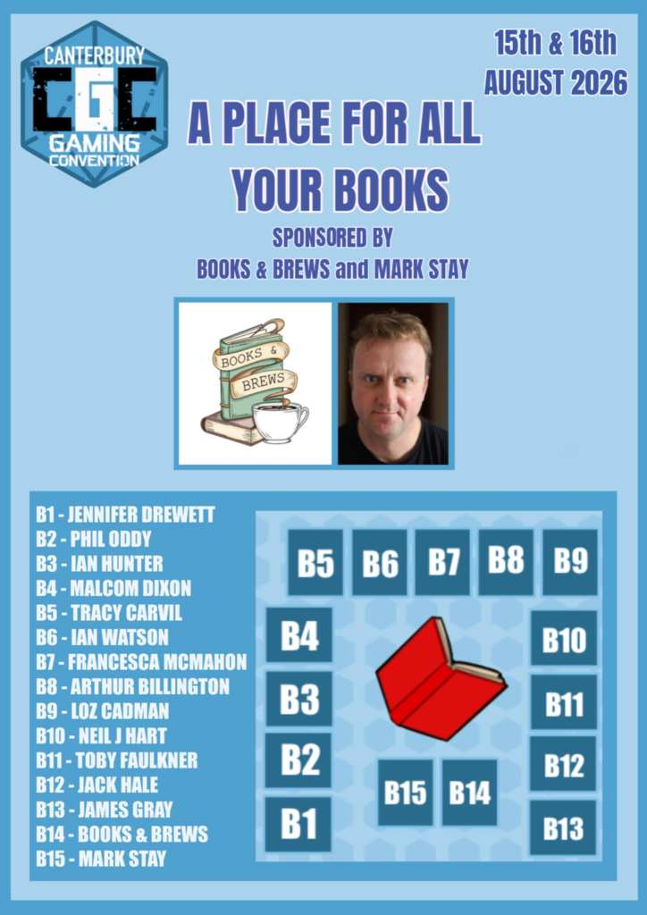 The organisers got in touch and told me that they’d had so much positive feedback from convention goers on the authors at the con that they wanted to do it properly this year. So, we proudly present a special corner of the Canterbury Gaming Convention: A Place for all your Books! This will be a dedicated area to authors and their books. We’ll be selling and signing, as you’d expect, but there will also be panels and maybe even some gaming!
