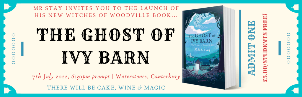 You are cordially invited to the launch of my next Witches of Woodville book THE GHOST OF IVY BARN on Thursday 7th July, 2022 at Waterstones, Canterbury…