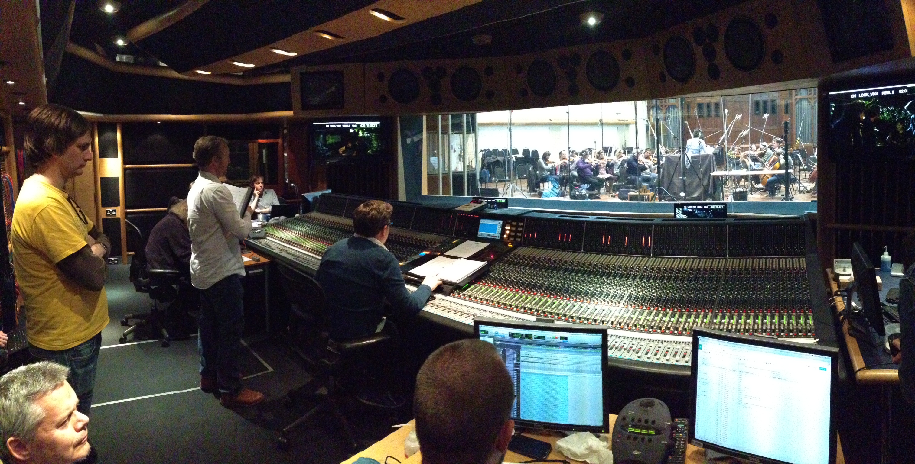 We discovered that the musicians hadn’t had any rehearsals. They were all sight-reading the music and often nailing it on the first take, all playing in time to a click track synchronised with a timecode on the screen. It certainly put my amateur fumblings on the guitar into perspective.
