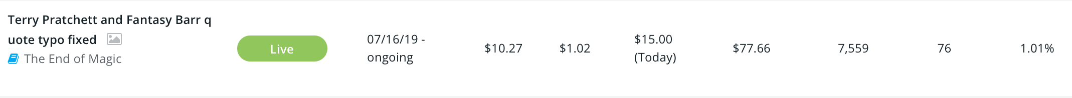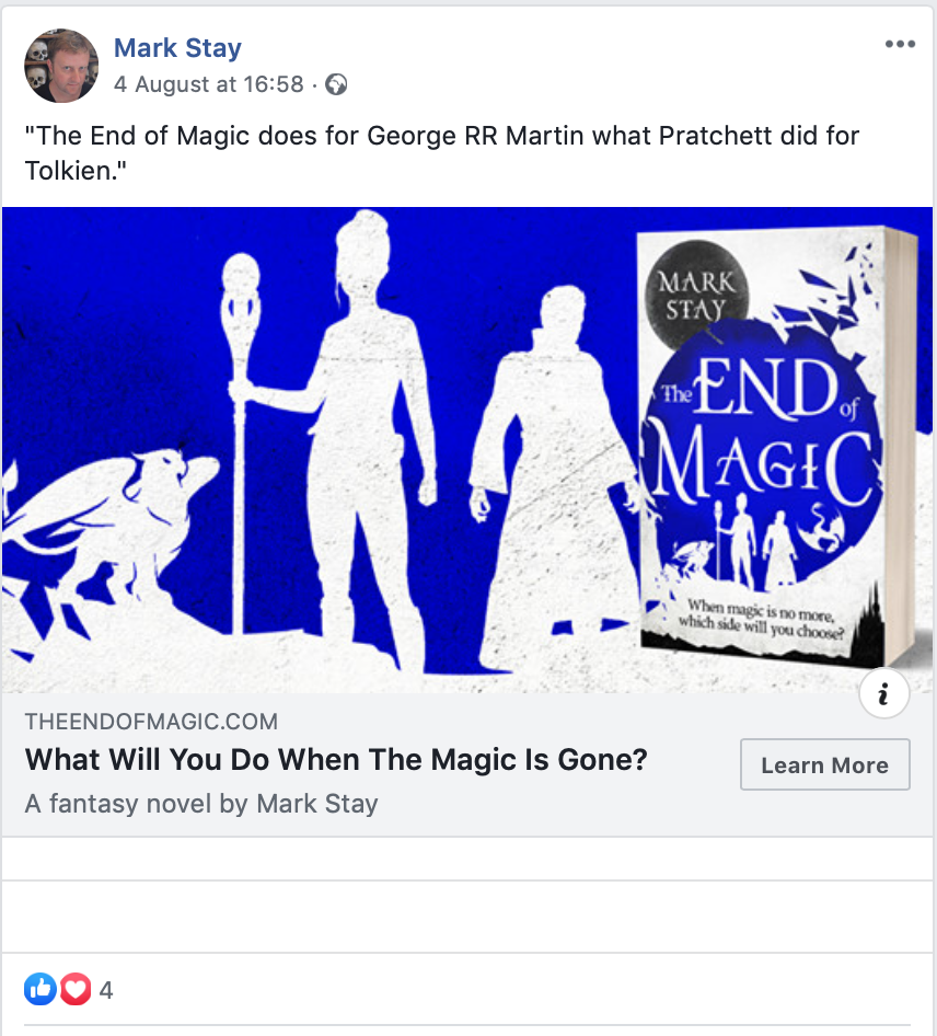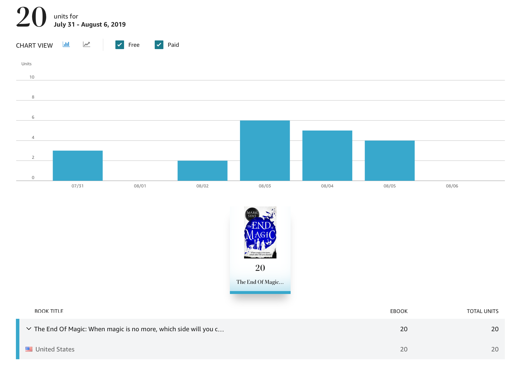On 9th July I made a big ol’ public declaration to sell a thousand copies of my fantasy novel The End of Magic by Christmas, and I promised to keep folks in the loop with the ups and downs of sales and marketing with a weekly update.